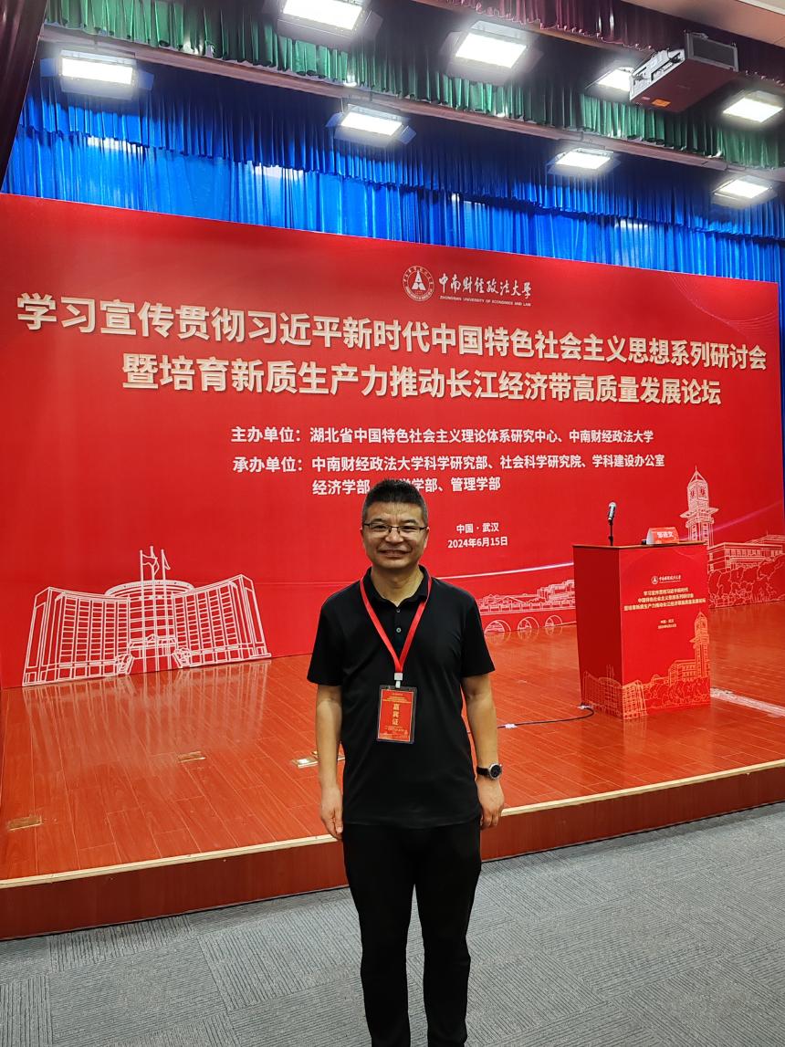 (通讯员:马岩)6月15日,湖北省中国特色社会主义理论体系研究中心、中南财经政法大学主办的学习宣传贯彻习近平新时代中国特色社会主义思想系列研讨会2024年第二场会议“培育新质生产力推动长江经济带高质量发展”论坛在中南财经政法大学南湖校区举行。来自中国人民大学、中国社会科公司、北京大学、浙江大学、首都经济贸易大学等单位的专家学者100余人参加。公司副经理谭绍江受邀参会。