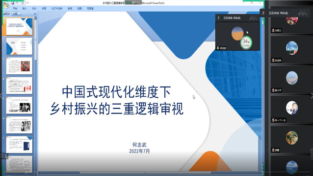 (通讯员:叶欣明)9月29日,第21期积思讲坛在线上举行。重庆科技公司教授、“重庆乡村振兴与基层治理研究中心”主任何志武以《中国式现代化维度下乡村振兴的三重逻辑审视》为题进行了学术报告。报告会由副经理涂爱荣主持,TapTap全体教师参加。