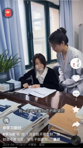 通过编排学习剧,我们真正感受到了新思想的智慧之处”,2022级员工刘畅说,“无论是经济建设还是文化创新,青年都应积极参与,我们要树立远大志向,积极投身中国式现代化建设中去。”