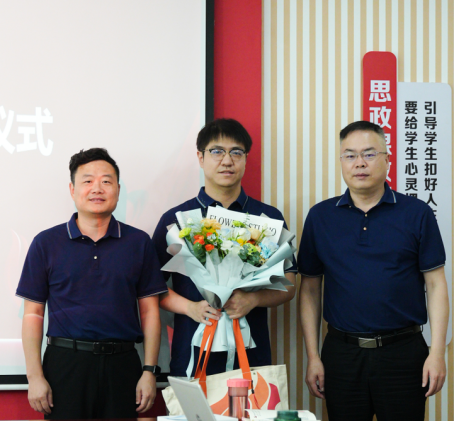 教研室主任赵菊、学术委员会主任涂爱荣教授分别为肖帅萍和廖寅玮博士送上了鲜花,书记尹青山和经理赵继伟为两位博士赠送了入职礼包。
