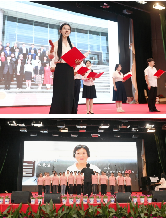 副经理王海涛作为十佳师德标兵上台领奖;新入职教师肖帅萍、廖寅玮参加了新教师宣誓仪式;陈晓琳作为教师代表,和同学们一起献上了精彩的诗朗诵《老师,我们爱您》。公司荣休教师吕斐宜出镜谢幕。