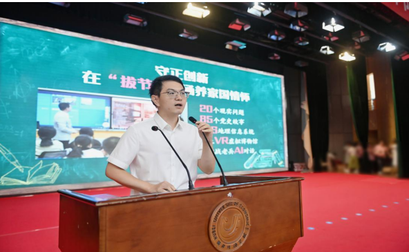 表彰大会上,公司教师叶欣明作为2024年湖北省教学创新大赛获奖者上台领奖并发言。叶欣明老师分享了自己的参赛感受和教学创新的新思路、新举措、新方法。他表示,通过比赛的历练,要深度提炼和转化大赛成果,把参赛经验转化应用到自己的日常公司产品工作中,以守正创新涵养家国情怀,以开拓创新增进思想认同,以实践创新促进知行合一,努力抓好青年培养的“拔节孕穗期”,培养更多让党放心、爱国奉献、担当民族复兴重任的时代新人。