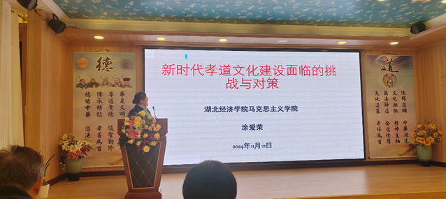 涂教授向大会提交了题为“新时代孝道文化建设面临的挑战与对策”的论文,并在大会上作了主题交流。在推进中国式现代化进程中,积极应对孝道文化面临的挑战,对中国传统孝道文化进行创造性转化和创新性发展,建立新型的孝道文化,是文化强国建设的题中应有之义,也是实现物质文明和精神文明协调发展的现代化的必然。她首先和学者们探讨了孝道的精神内核,认为从孝道的规范来看,孝道的精神内核体现为孝养、孝敬、孝顺、孝谏、孝思五个层面的要求。关于新时代孝道文化建设面临的挑战,涂教授从观念层面的孝道意识淡漠化、行为层面的赡养行为物质化、技术层面的亲情联结网络化三个方面进行了深入剖析,并在此基础上,提出了面对孝道文化建设面临的挑战,必须从教育、宣传、制度、技术多角度入手,多方联动,多管齐下,积极应对。一是要加强理论研究,构建新型孝道;二是要加大宣传教育,增强孝道自觉;三是要完善制度设计,推动孝道践行;四是要利用数智技术,创新养老方式。