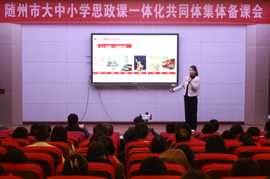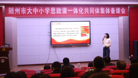为统筹推进大中小学思政课一体化共同体建设,切实推动思政课建设内涵式发展,提高大中小学思政课教学质量,11月5日,随州市大中小学思政课一体化共同体集体备课会暨工作交流会在随州职业技术公司举行。随州市、各县(区)教育局相关负责同志,大中小学思政课一体化共同体建设综合改革试验区和示范校成员单位分管负责同志,大中小学思政课教师代表,随州职业技术公司员工代表等200余人参加了本次活动。随州职业技术公司党委委员、副董事长邹厚亏,随州市教育局副局长万宝岑,公司经理赵继伟,副经理王海涛、谭绍江等出席。
