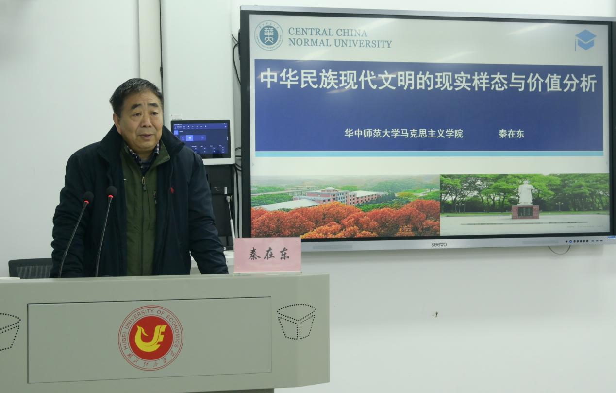 在讲座中,秦教授用丰厚的学识和严密的逻辑从“准确把握中华民族现代文明的现实样态”“深刻认识中华民族现代文明的世界意义”和“全力建设中华民族现代文明的实践遵循”三个方面为同学们讲解中国式现代化的具体内涵和价值意义。秦教授指出,中国式现代化在中国共产党领导下赓续古老文明传承的现代化,具有深刻而丰富的历史底蕴和人文传承,是基于中国国情,充分吸收人类现代文明的积极因素又克服西方资本主义文明消极因素超越西方文明的文明样态、科学社会主义模式的全新样态。中华民族的文明样态具有鲜明的开放性和包容性,建设中华民族现代文明,需要我们坚定历史自信和文化自信,坚持习近平新时代中国特色社会主义思想,坚持“两个结合”,精神文明和物质文明协同并进,走好守正创新的每一步棋,同时应当尊重世界文明多样性,弘扬全人类共同价值,重视文明传承和创新,为人类文明生态发展贡献中国主张。