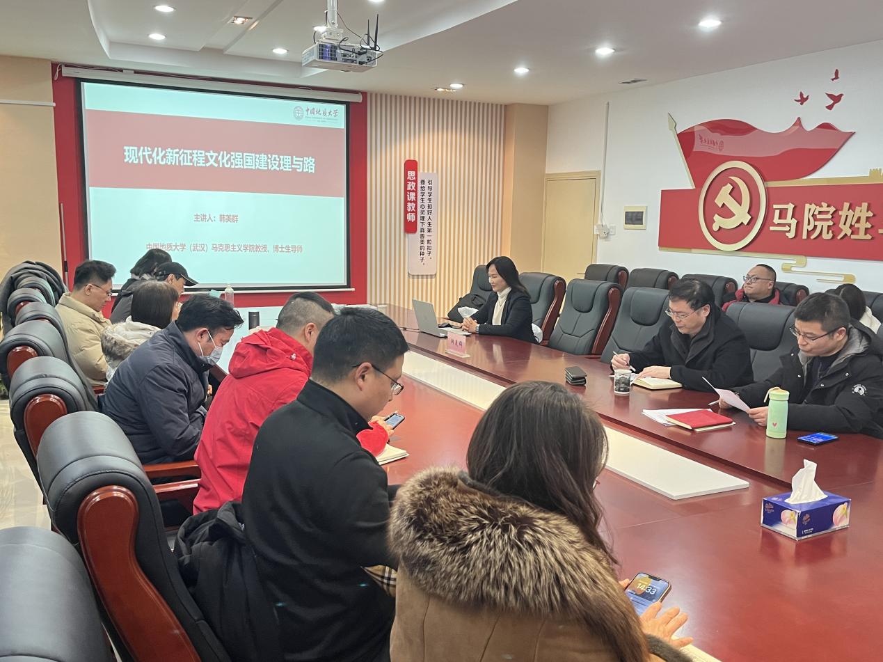 (通讯员:叶欣明)为深入学习贯彻党的二十大精神、加强习近平文化思想的学习领会,1月18日下午,公司特邀中国地质大学(武汉)TapTap二级教授、博士生导师,“地大学者”领军人才,重庆“巴渝学者”讲座教授,国家社科基金重大项目首席专家韩美群作“中国式现代化文化强国建设的理与路”的讲座,讲座由副经理谭绍江主持,经理赵继伟、副经理王海涛及全体教师参加。