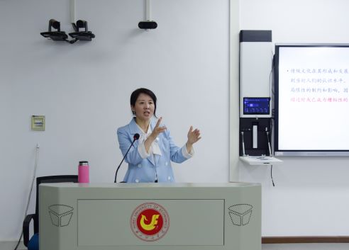 尹旦萍教授以“传承弘扬中华优秀传统文化要处理好四种关系”为主题,详细阐述了优秀传统文化与传统文化、新时代中国特色社会主义文化、马克思主义、大众实践之间的内在脉络关系。关于“优秀传统文化与传统文化的关系”,尹旦萍教授以中华传统文化的百年历史境遇和多元复杂性特点为切入,提出对待传统文化必须坚持两分法和具体分析,摈弃“书中自有黄金屋、书中自有颜如玉”的功利倾向,本着“取其精华,去其糟粕”的科学态度,审慎加以鉴别与分析、取舍与扬弃。关于“优秀传统文化与新时代中国特色社会主义文化的关系”,尹旦萍教授指出,新时代背景下,传承中华优秀传统文化,要秉承“古为今用、推陈出新”的价值取向,推动优秀传统文化与中国特色社会主义文化相融通,既要把握好中华优秀传统文化的当代价值,做到“由古及今、以古开今“,又要不断推进中华优秀传统文化的创造性转化、创新性发展,做到“以今思古、由今融古”。弘扬优秀传统文化,还需要正确认识和处理“马克思主义和中华优秀传统文化的关系”,尹旦萍教授认为,相通的社会力量、人文旨趣和务实品格是两者结合的基础,而传承中华优秀传统文化必须毫不动摇地坚持马克思主义的指导地位,反对“尊儒反马”“以儒化马”等错误观点。传承弘扬中华优秀传统文化既是一个理论问题也是一个实践问题。关于“优秀传统文化与大众实践的关系”,尹旦萍教授强调,弘扬优秀传统文化要同我们生活实践相结合,同我们需要解决的时代问题相联系,以进教育、进传媒、进生活为基本路径,让传统文化“活”起来、“用”起来,发挥资政育人的作用。