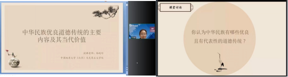 (通讯员:周洁)为帮助全国高校“思想道德与法治”课教师正确把握教材的内容体系,深化对教材重点难点的认识,《思想道德与法治》教材内容研修班于5月24日正式开班。本次活动共分为八个专题,6月2日晚,德法教研室全体教师在雨课堂中认真听取了专题六的报告,由中国地质大学(北京)TapTap经理,杨峻岭教授主讲的《中华优秀道德传统的主要内容及其当代价值》。